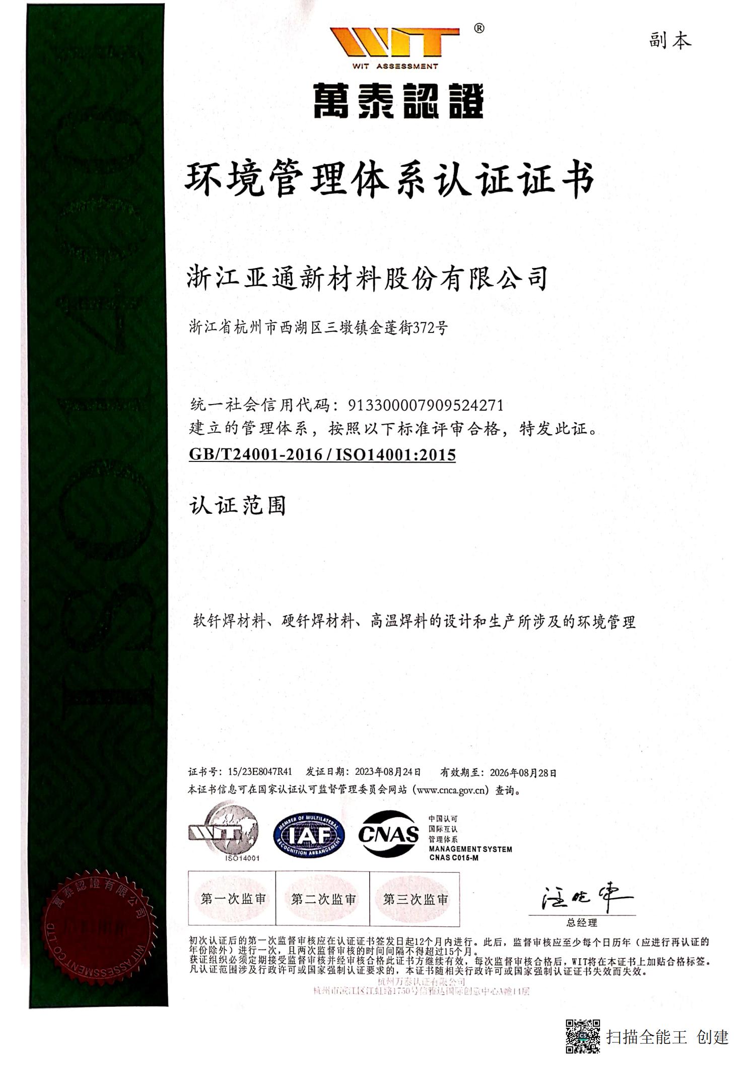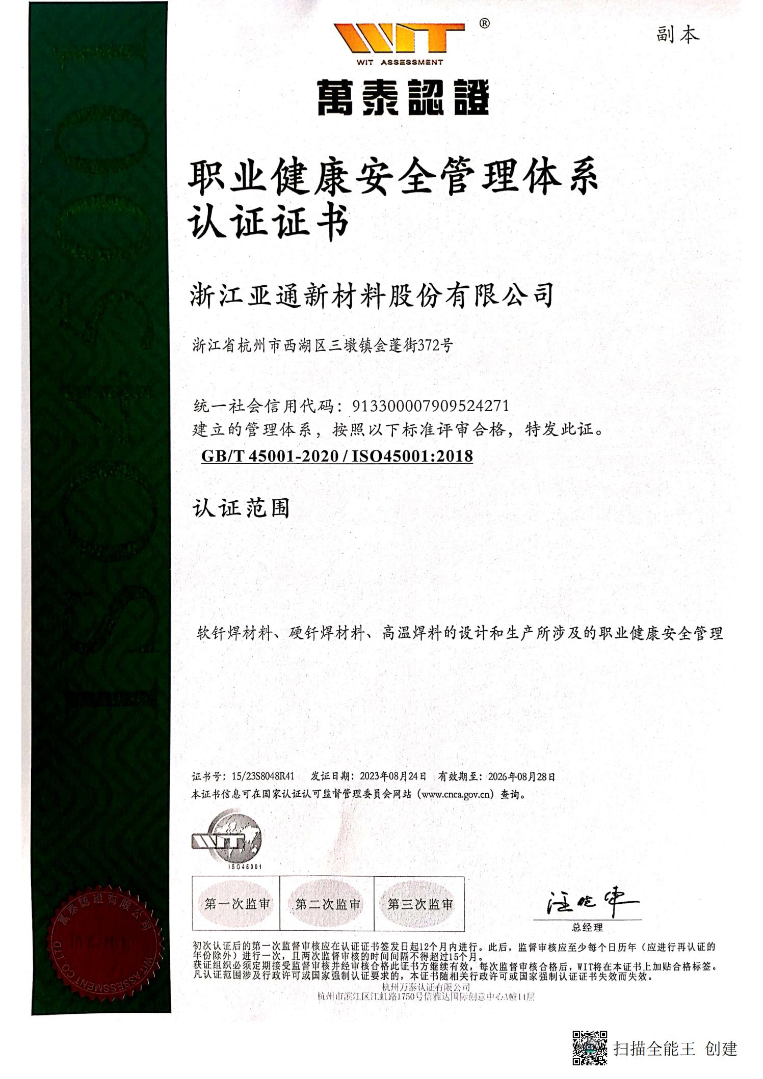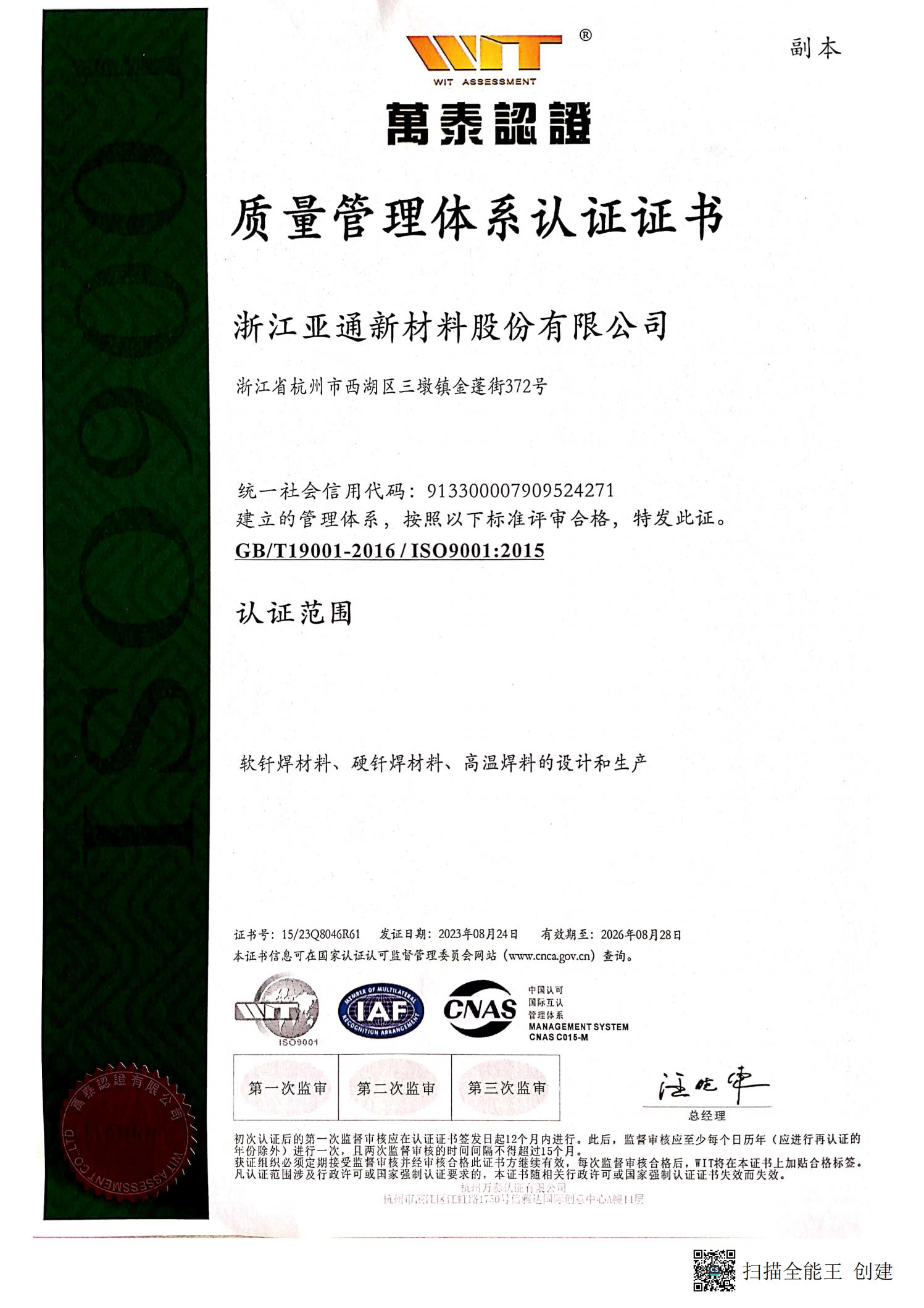 浙江亞通新材料股份有限公司是世界500強企業杭鋼集團投資設立的高新技術企業,位于杭州市西湖區紫金港科技城,專業從事高中低溫全系列釬焊材料和金屬粉體的研發生產和銷售,是國內焊接材料行業的核心企業之一,多項國家標準的主要起草單位。公司在中國電子材料行業協會、國家標準化技術委員會、中國焊接協會等專業機構擔任領導職務,在行業內具有廣泛影響力。
